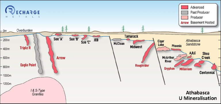 Notable examples of this style of uranium mineralisation within the Athabasca Basin are highlighted by the more recent discoveries at Arrow and Triple R (Patterson Lake South).