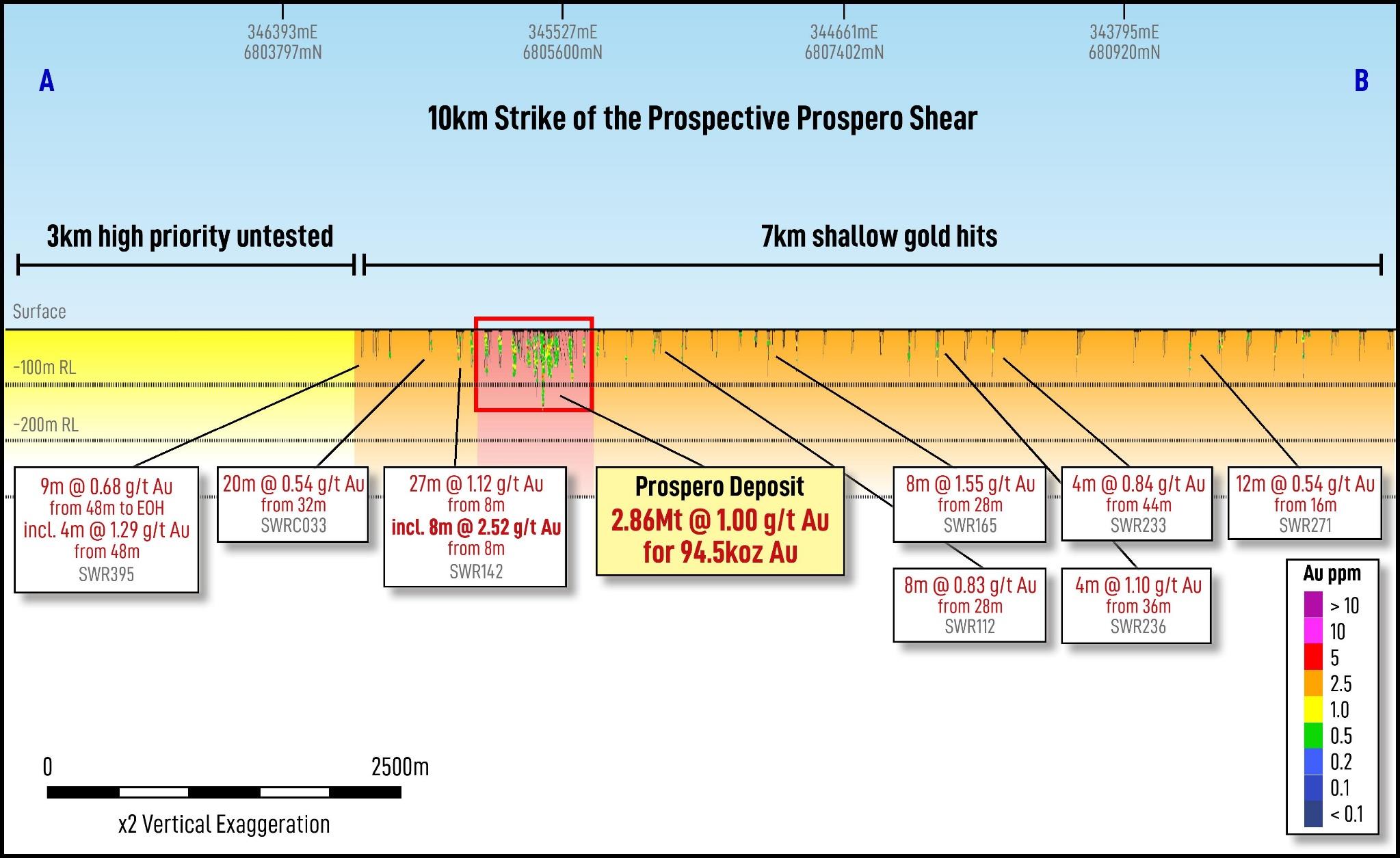 The Prospero Deposit lies within an interpreted 10km structural corridor associated with the Prospero Shear Zone (Figure 2 and Figure 3).